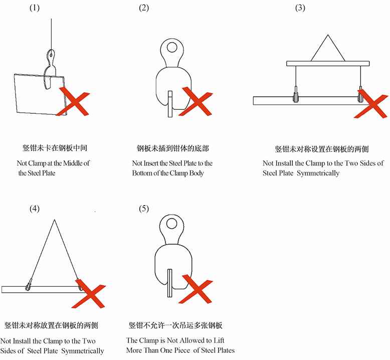 3.吊起钢板后有严重的倾斜时,应重新安装竖钳。